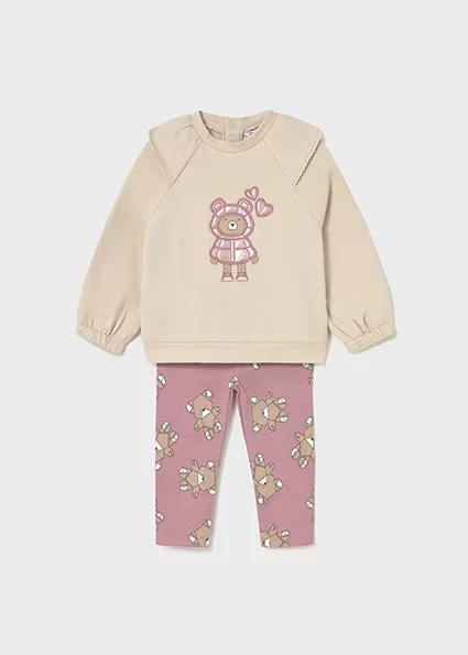 Conjunto legging estampado y sudadera bebé niña Osito Rosa Mayoral