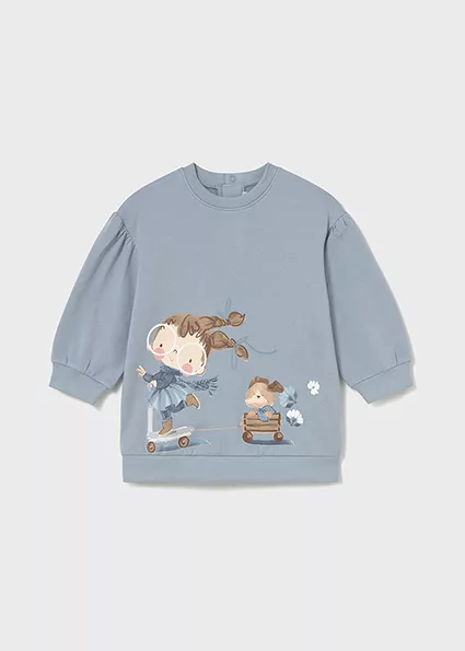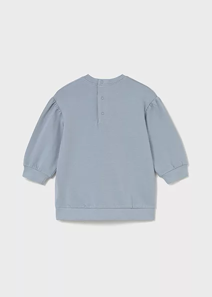 Vestido de manga larga para bebé. Cuello redondo. Cierre con botones a presión en la parte posterior.