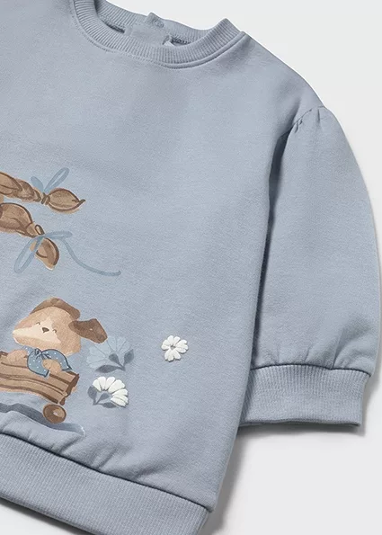 Cálido tejido de felpa gruesa (felpa perchada), perfecta para los meses fríos. Modelo con rizo. Elementos de adorno: serigrafía (print).