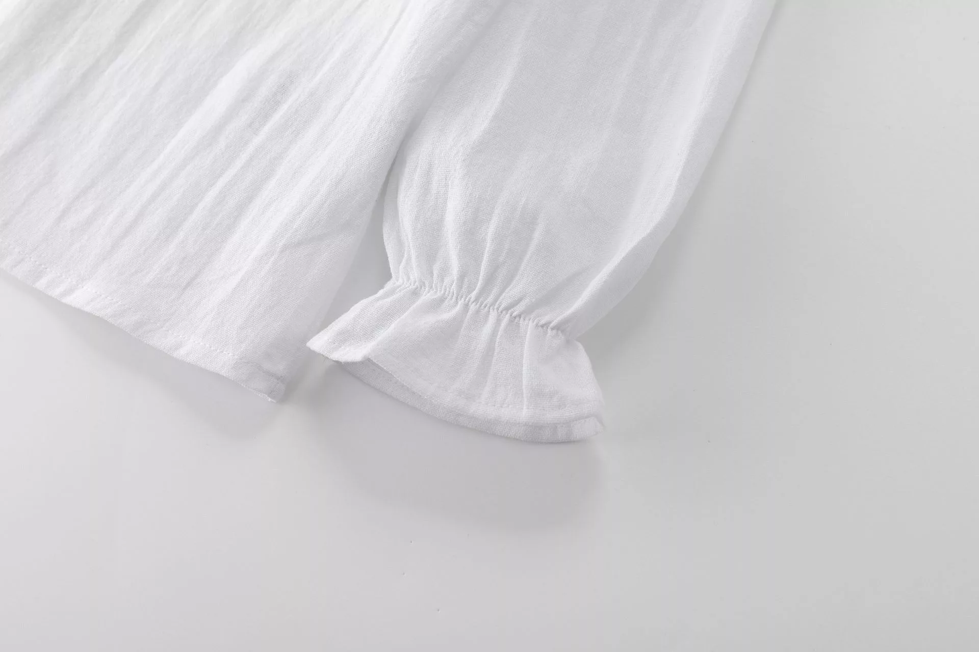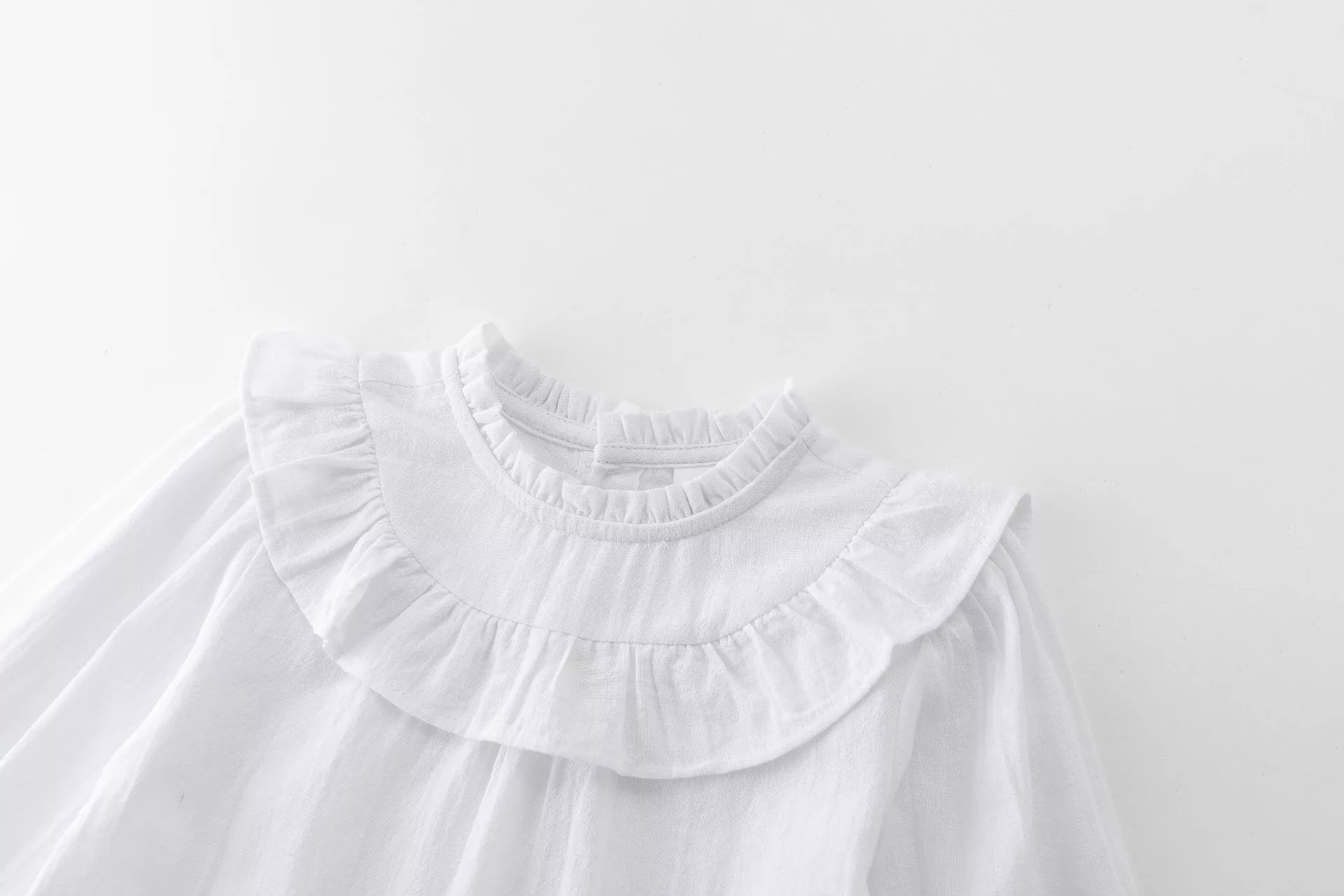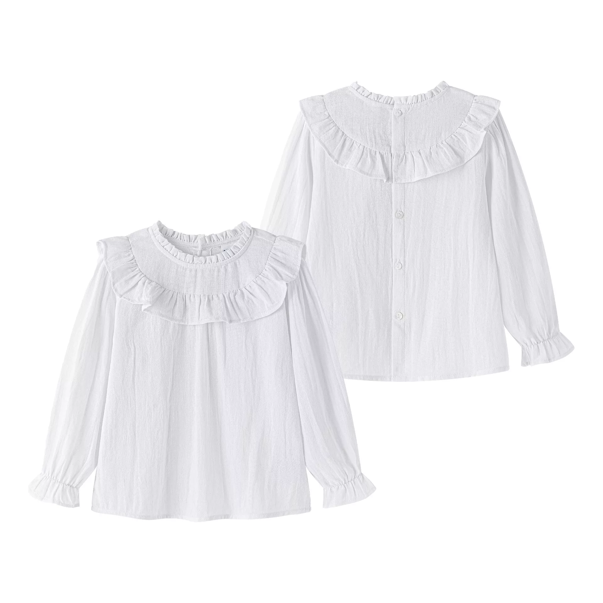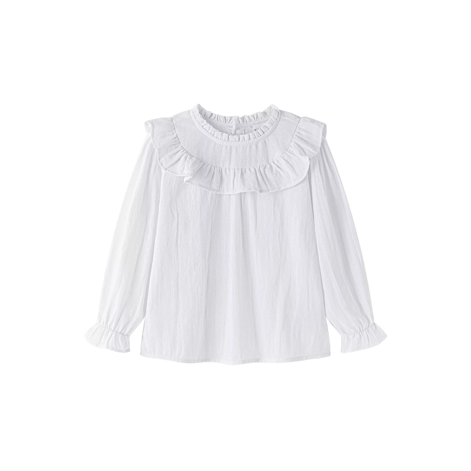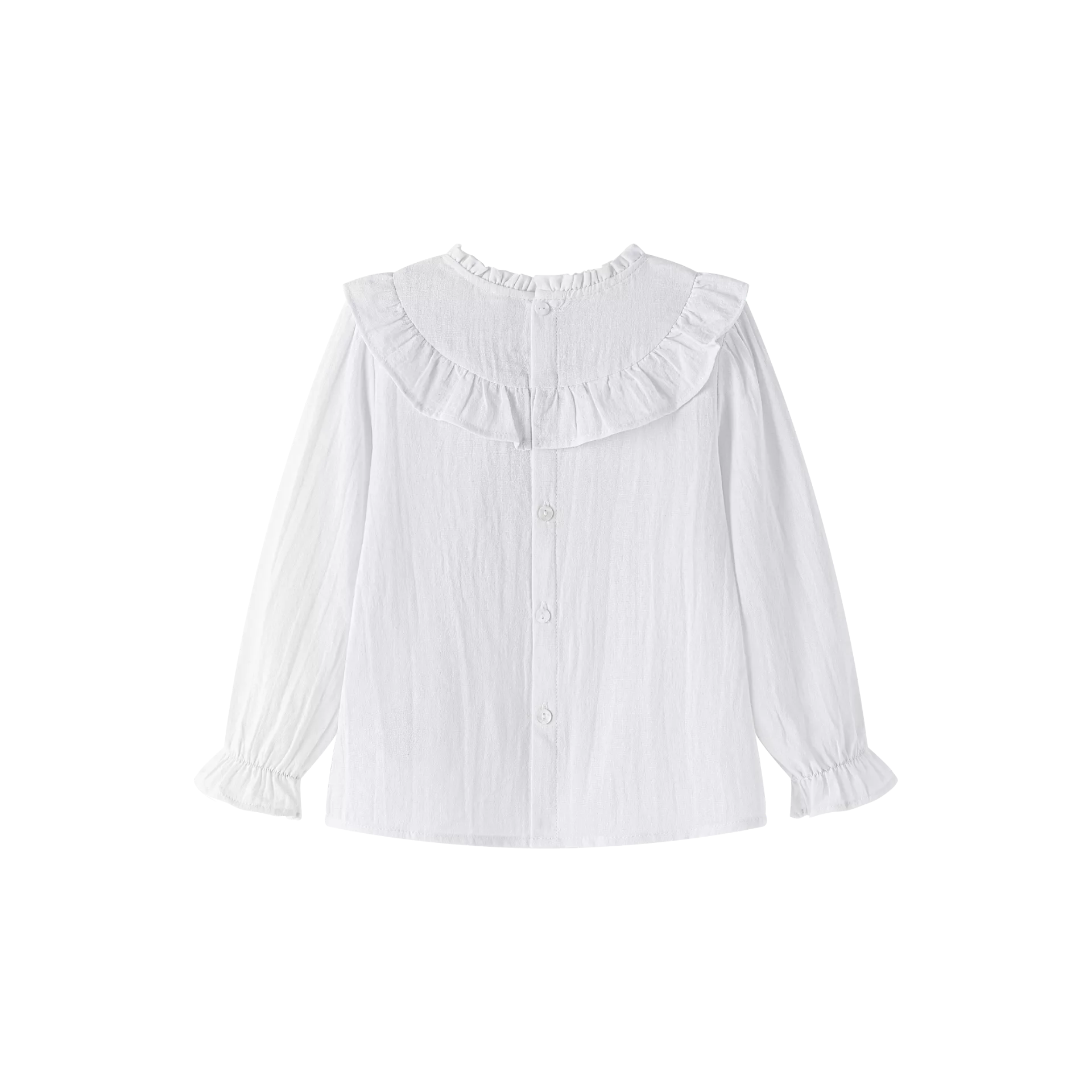 Blusa de manga larga con volante a tono puños elásticos y cuello volante fino