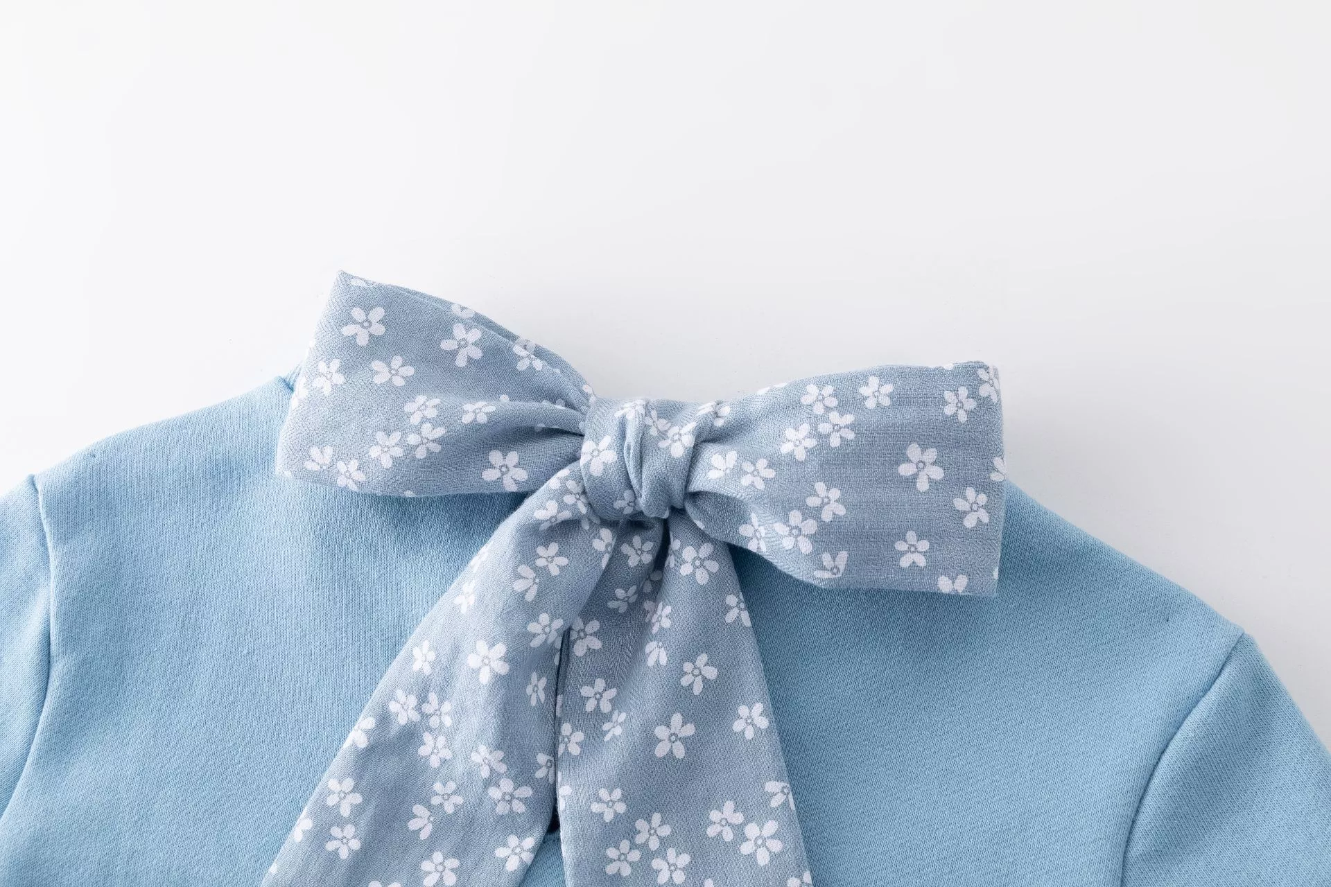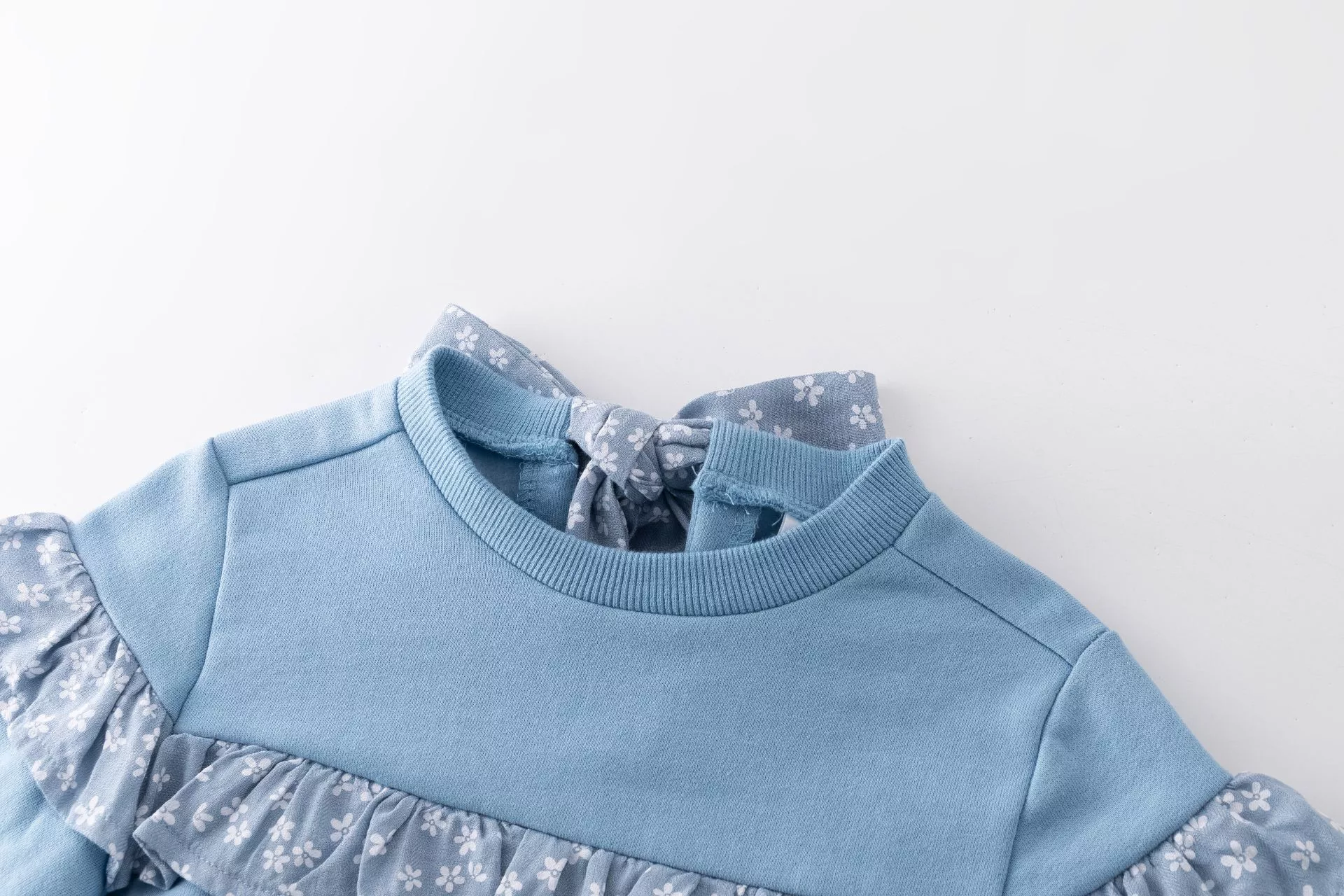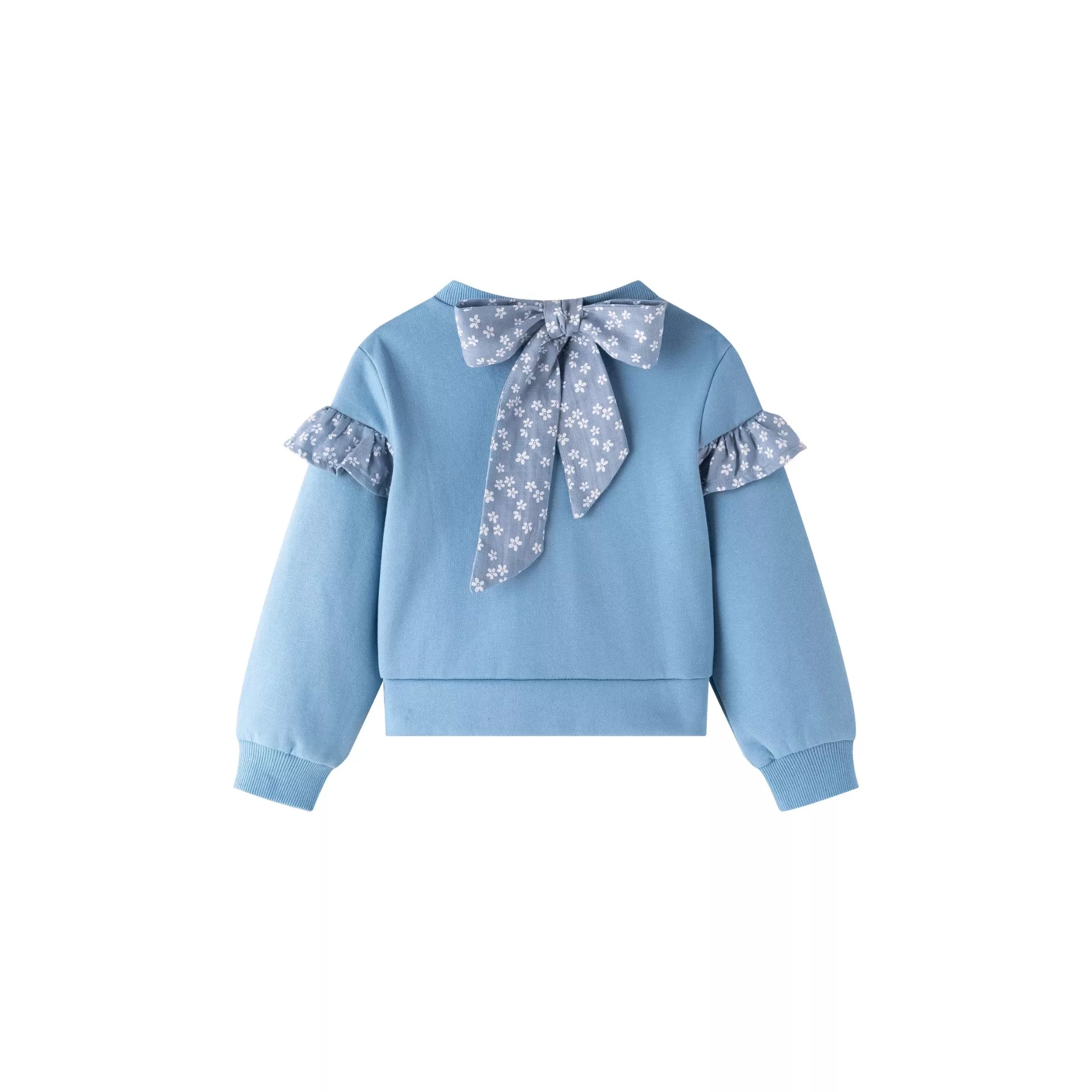 Sudadera con detalle de volante de tejido flores y lazo en la parte trasera