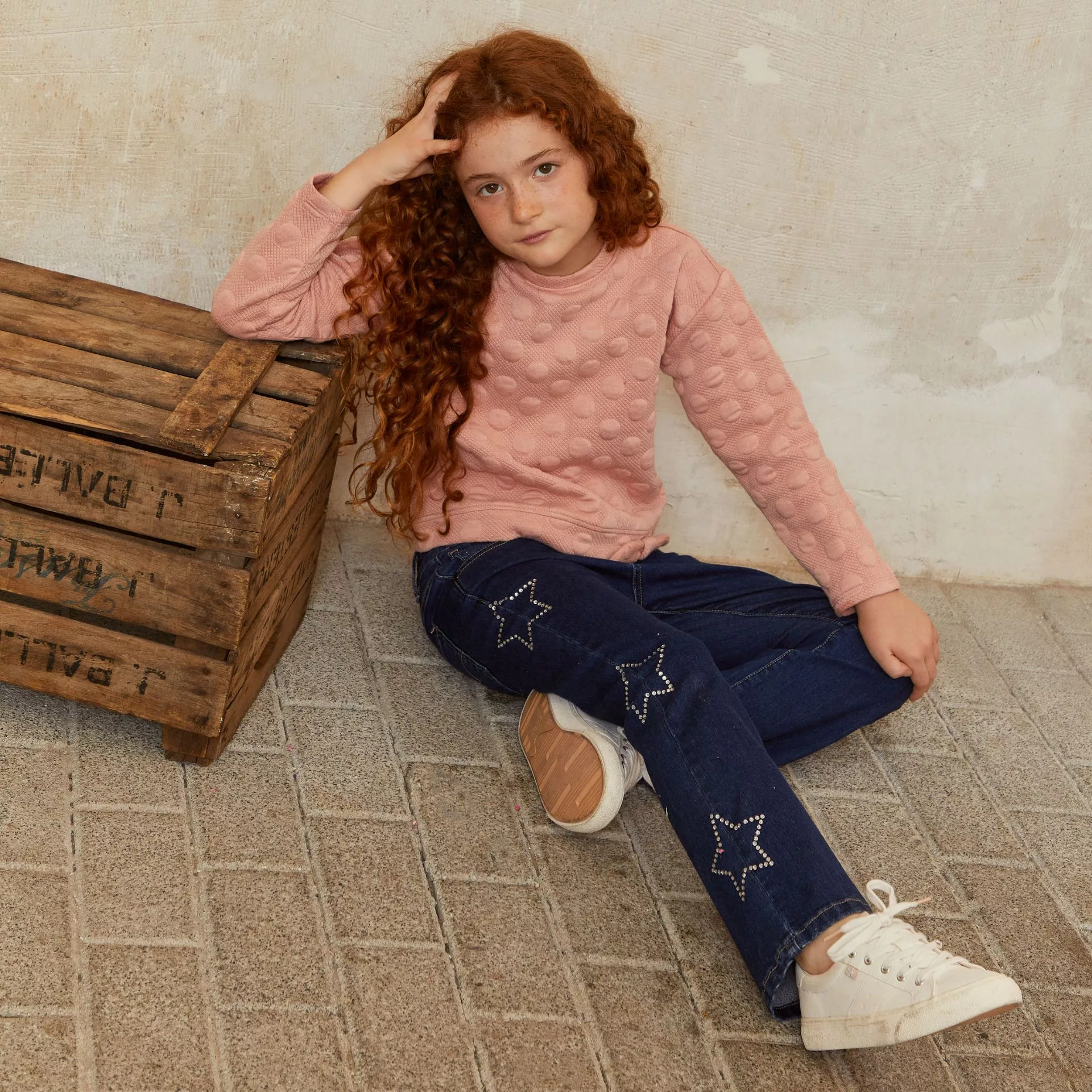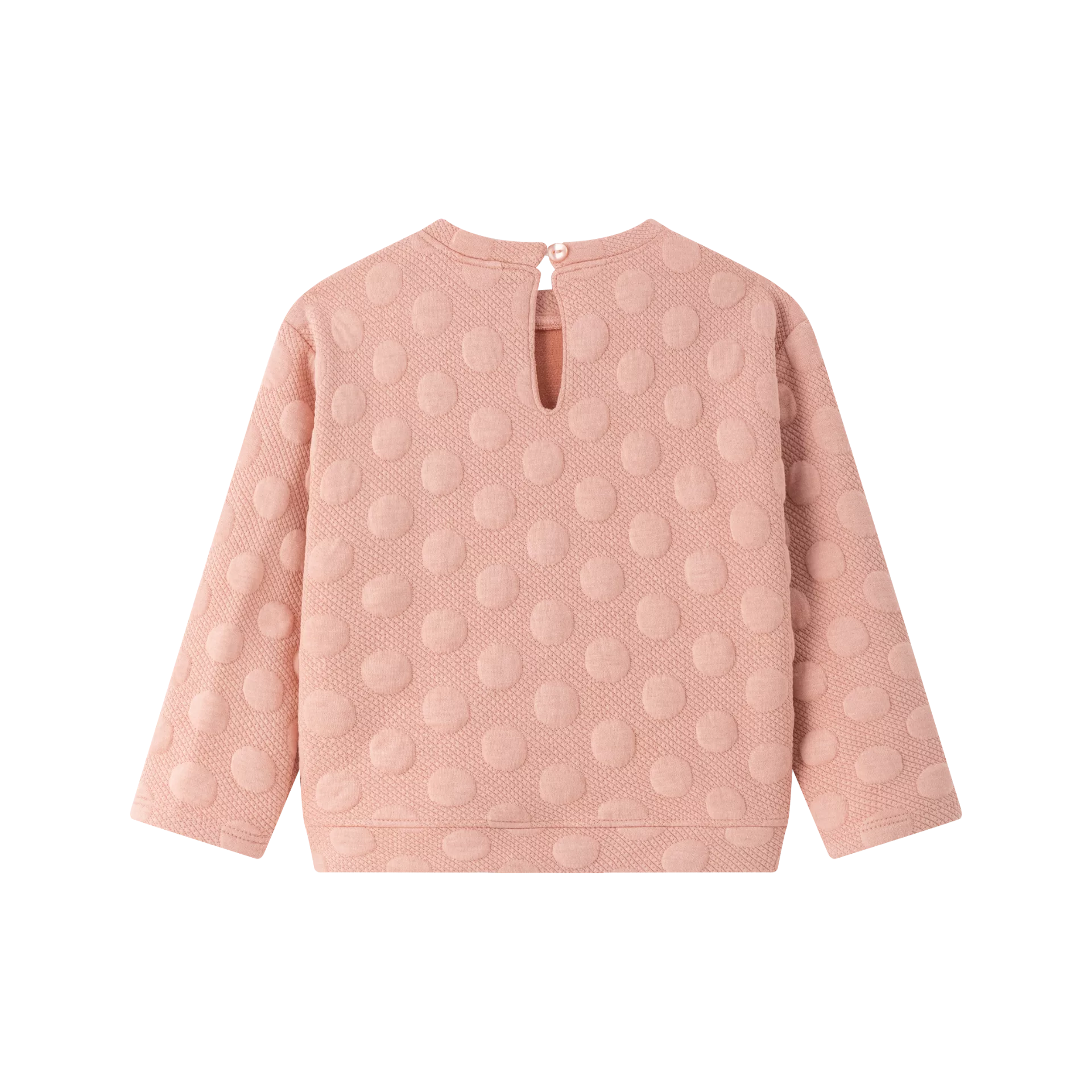 Sudadera de felpa con textura, y nudo lateral en el bajo. Abertura con botón de plástico en espalda
