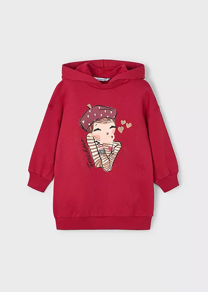 Vestido de manga larga para niña. Cuello con capucha. Cálido tejido de felpa gruesa (felpa perchada), perfecta para los meses fríos.