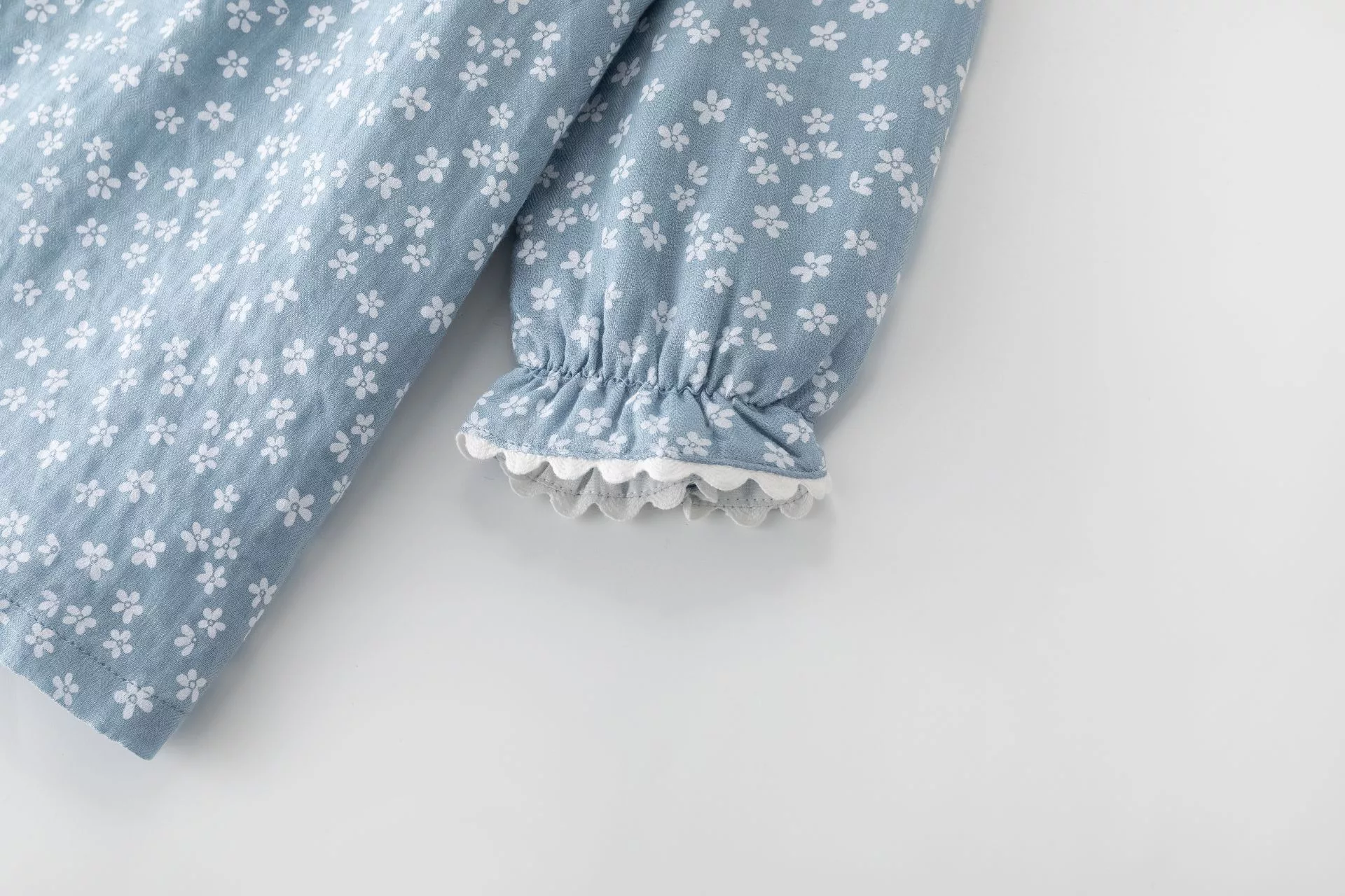 Vestido manga larga con volante a tono y cuello volante fino.