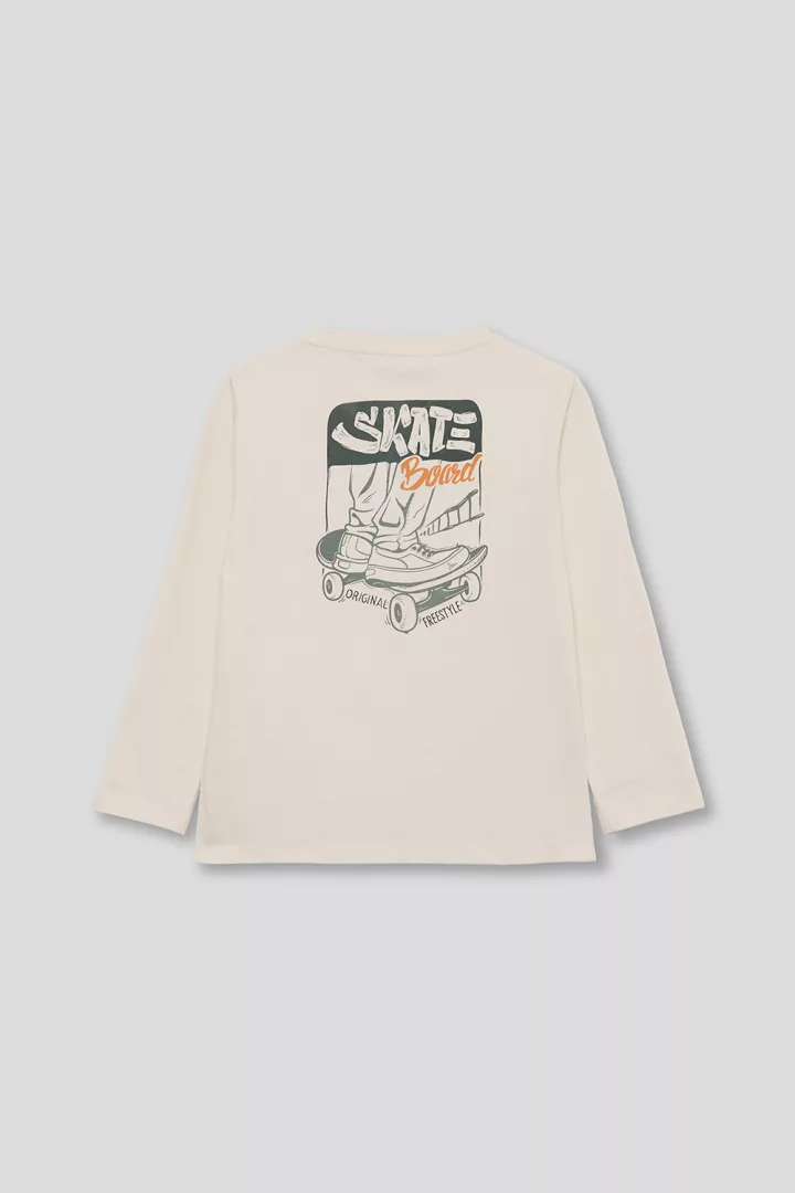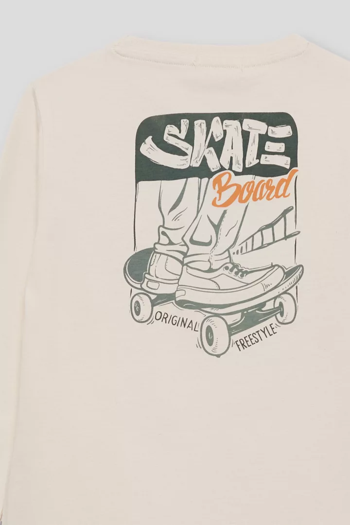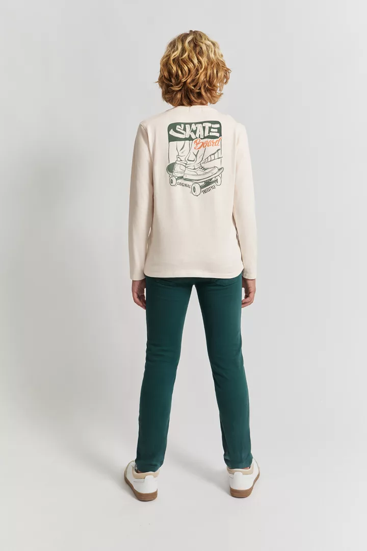Camiseta en punto suave y elástico, esta camiseta presenta un diseño con tipografía "STMK SOUL" en el delantero y un gran estampado trasero de estilo skater con ilustración de monopatín en tonos verde y naranja. Cuello redondo y corte recto que aporta comodidad en el día a día.