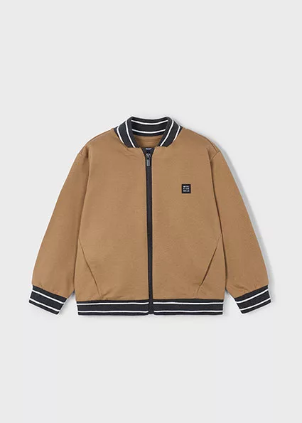 Sudadera de manga larga para niño. Cuello bomber. Cierre central delantero con cremallera.